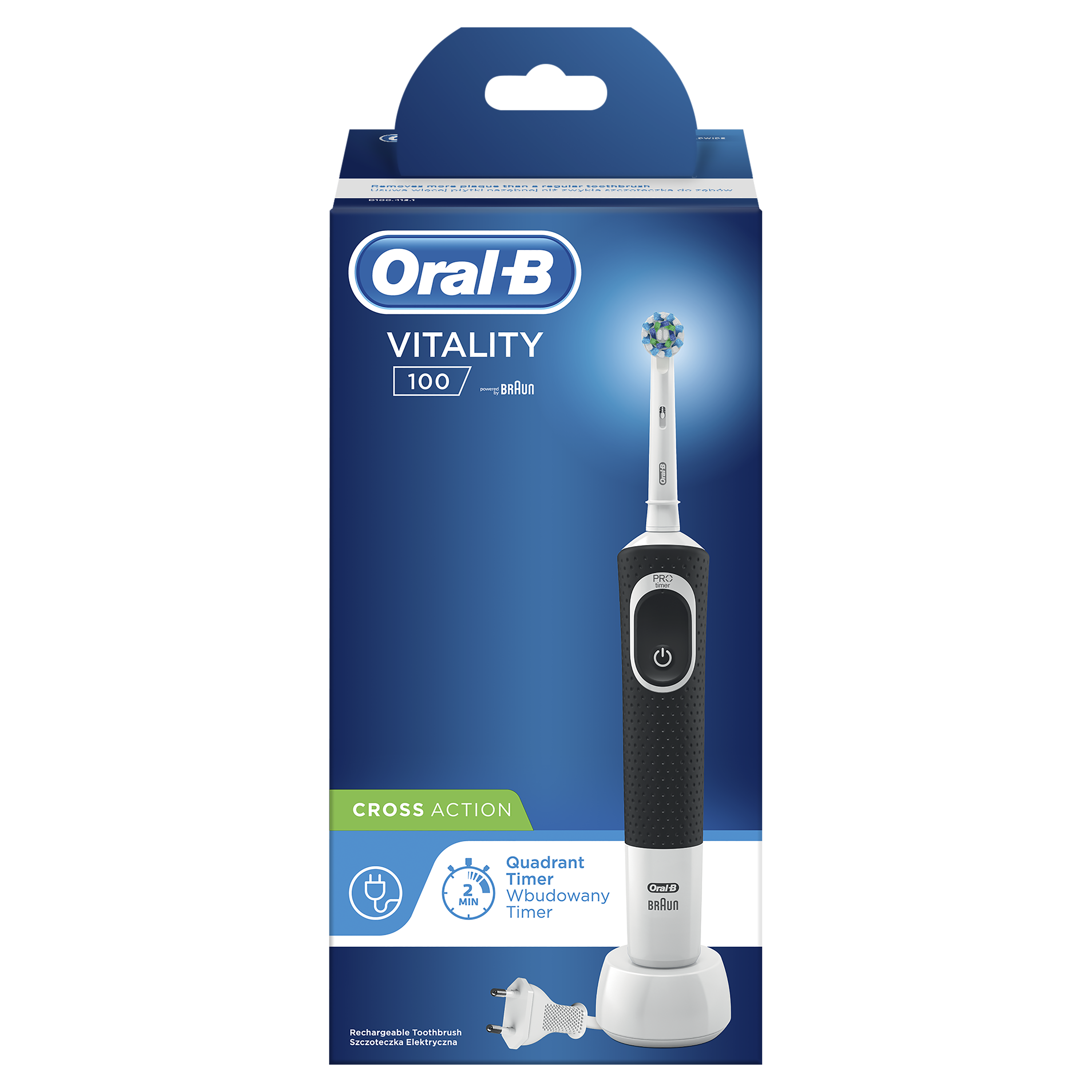 Oral-B Vitality Cross Action elektriline hambahari eemaldab tavalisest hambaharjast oluliselt rohkem kattu ning eemaldab hammastelt plekid. Harjapea sooritab 7600 edasi tagasi liigutust minutis.