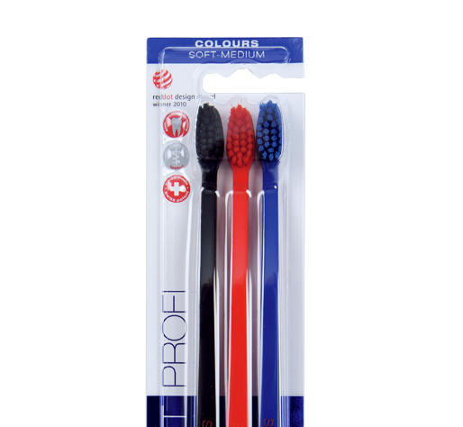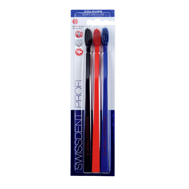 Swissdent PROFI Colors SOFT-MEDIUM käsihambaharjad (must, punane, sinine)