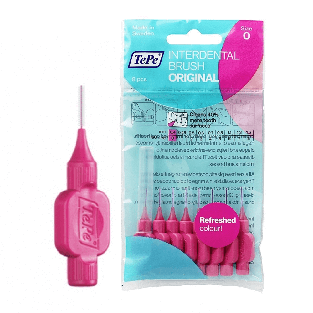 TePe 0,4 mm hambavaheharjad ROOSA (0 suurus, 8 tk pakis – interdentaalhari)